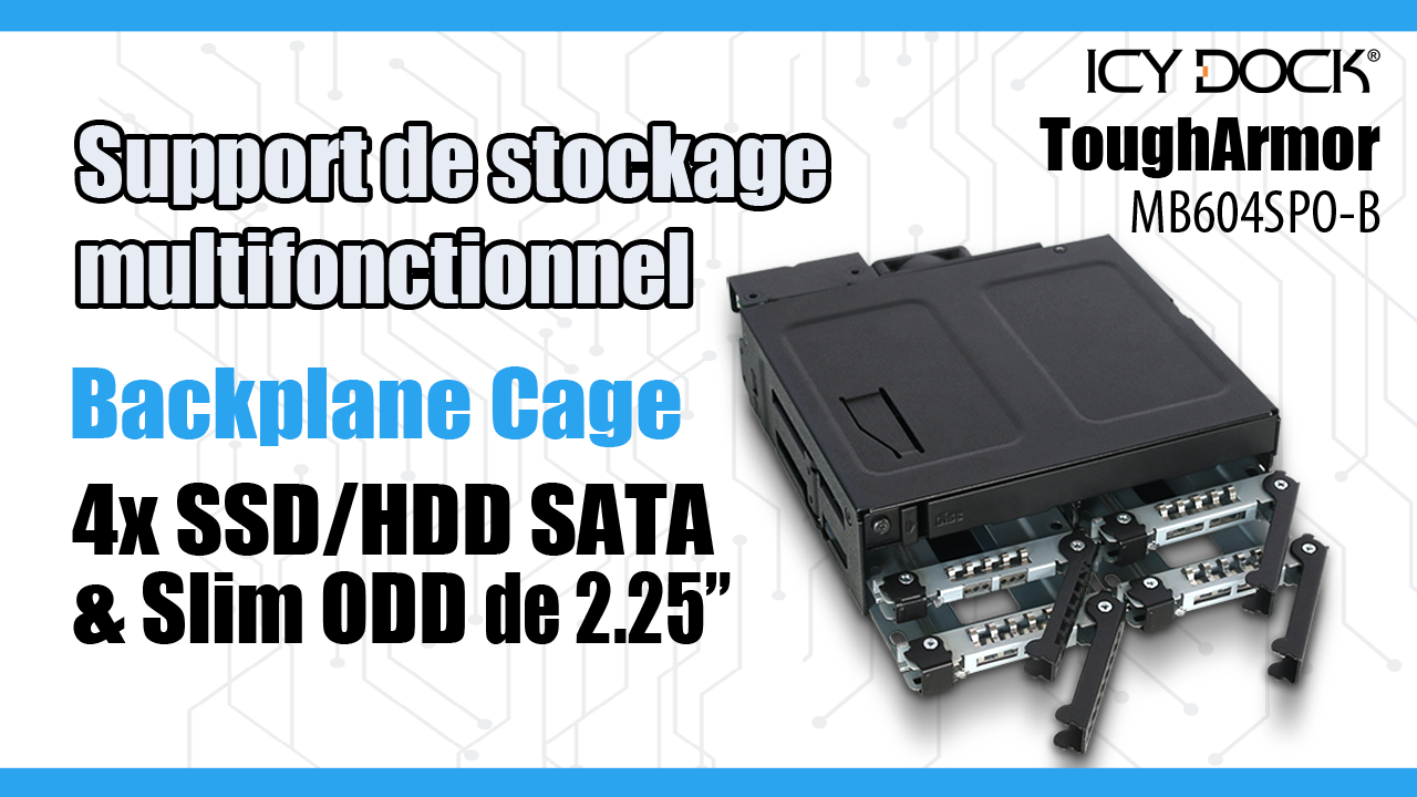 Convient pour 4 SSD ou disques durs de 5 à 9.5mm de hauteur