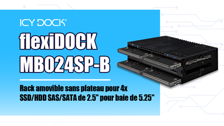 Supporte 4x HDDs/SSDs 2.5" SAS/SATA (jusqu'à 9.5mm de hauteur de disque)