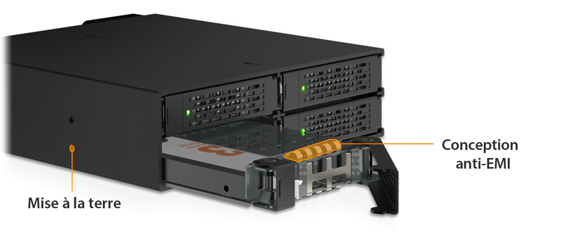 • | Mise à la terre EMI – protège les SSD contre les dommages électriques |