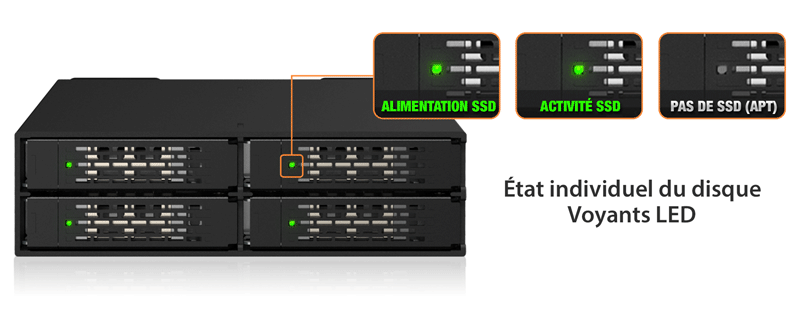Taux de transfert : | Jusqu’à 128 Gbps par SSD (selon la vitesse du SSD) |