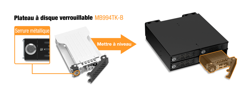 Taille de disque prise en charge : | 2.5" (prend en charge les SSD U.2/U.3 de 15 mm de hauteur) |