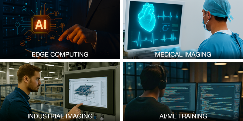 Avec le PCIe 5.0 offrant jusqu’à 128 Gbps par SSD, le MB699V5P-B propose une bande passante doublée par rapport au PCIe 4.0 et quatre fois plus rapide que le PCIe 3.0. Cette vitesse exceptionnelle en fait un choix idéal pour des applications telles que :