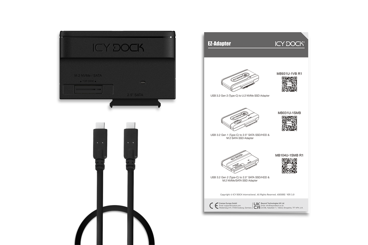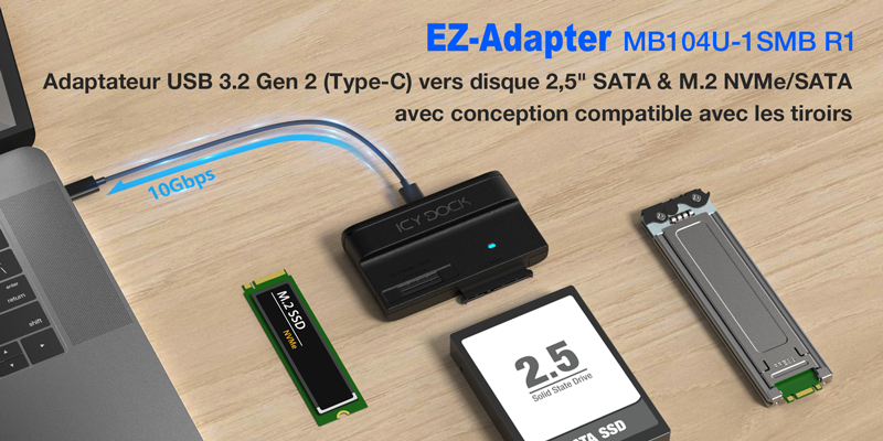 De plus, cet adaptateur prend en charge l’accès direct aux tiroirs SSD provenant de diverses solutions amovibles ICY DOCK, notamment : MB840M2P-B, MB840M5P-B, MB842MP-B, MB842M5P-B, MB852M2PO-B, MB872MP-B, MB873MP-B. Avec le MB104U-1SMB R1, les utilisateurs peuvent instantanément lire les données de ces modules SSD à tiroir via n’importe quel ordinateur ou station de travail équipée d’un port USB — sans avoir à réinstaller ou retirer le SSD.