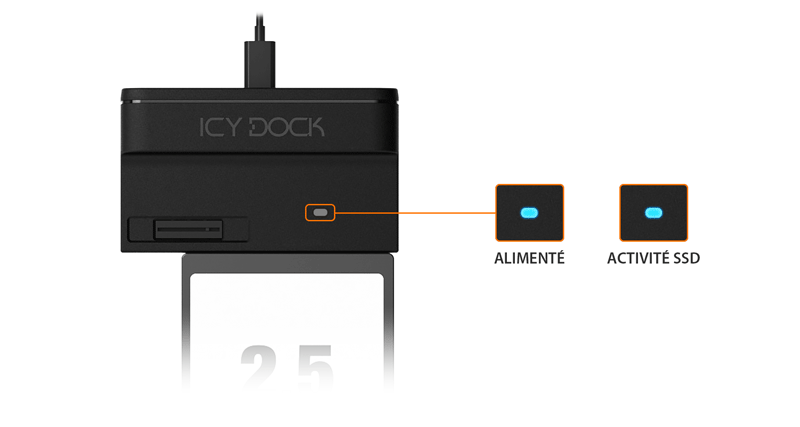Remarque : Veuillez utiliser le câble USB fourni avec ICY DOCK. Si vous disposez d’un câble aux mêmes spécifications, vous pouvez essayer de le remplacer pour voir si cela résout le problème.
