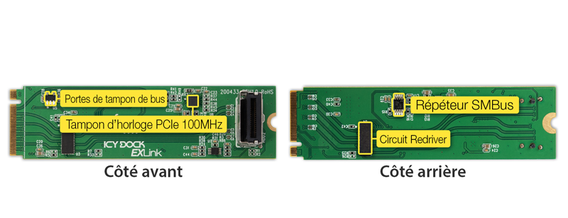 | • | Répéteur PCIe Gen5 intégré assurant l'intégrité du signal à haute vitesse sur de longs câbles |