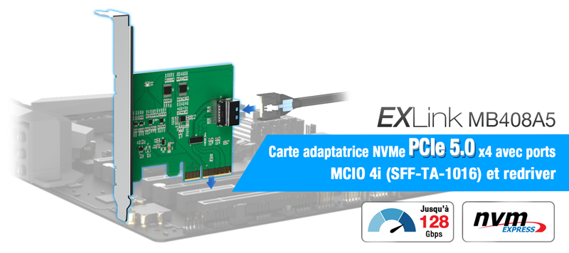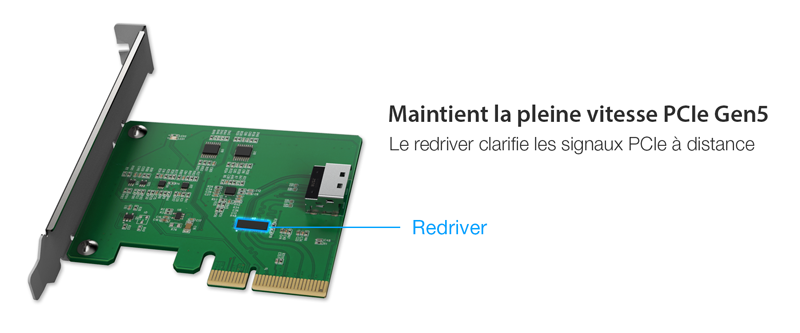 | • | Redriver PCIe Gen5 intégré pour une portée de signal étendue |