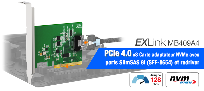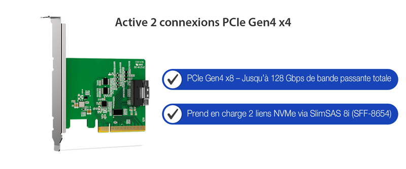 | Taux de transfert: | PCIe 4.0 x8 jusqu’à 128Gbps |